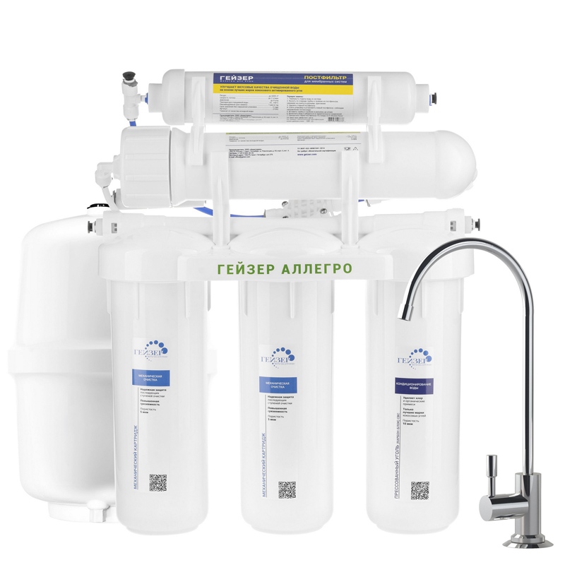 ЭТАПЫ ОЧИСТКИ ВОДЫ СИСТЕМОЙ ОБРАТНОГО ОСМОСА ГЕЙЗЕР АЛЛЕГРО: