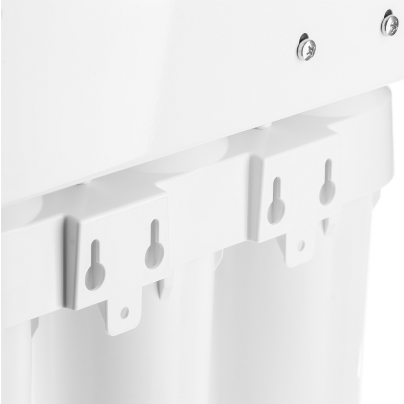 - Предварительная очистка (подготовка воды для увеличения срока службы мембраны): 1 и 3 ступени: осадочные картриджи РР 5 - 10SL — удаляют нерастворимые частицы размером до 5 мкм (ржавчина, взвеси) - 2 шт.; 2 ступень: Картридж Гейзер Микс Блок 10 мкм -10SL — содержит высококачественный активированный уголь на основе скорлупы кокосового ореха с добавлением ионообменного материала Каталон – эффективно удаляет из воды хлор, железо, органические и хлорорганические соединения, пестициды, нефтепродукты и фенолы- 1 шт. Ресурс - 6 месяцев в зависимости от качества воды.
