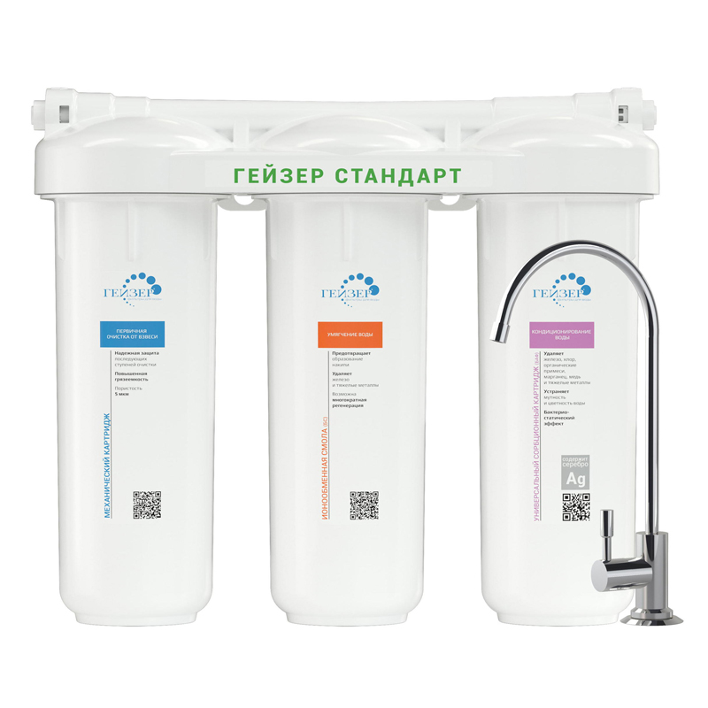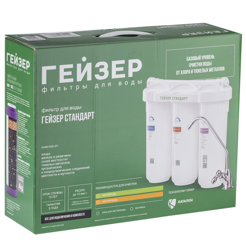 Фильтр Гейзер Стандарт специально разработан для регионов с жесткой водой (средний уровень минерализации).