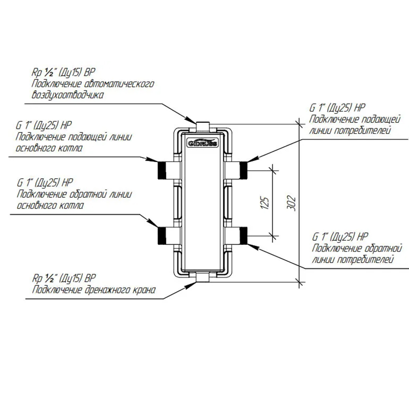 GIDRUSS Гидровлический разделитель 1" до 60 кВт (нерж.)