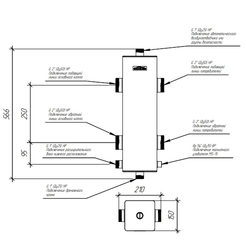 GIDRUSS Гидровлический разделитель 2" до 250 кВт (нерж.)