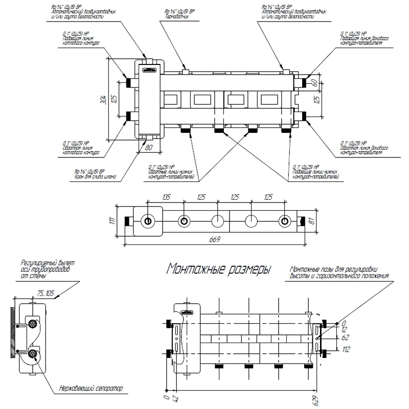 GIDRUSS Коллектор с гидрострелкой BMSS-60-3D (60 кВт, вх. 1", 2+1 вых. 1")