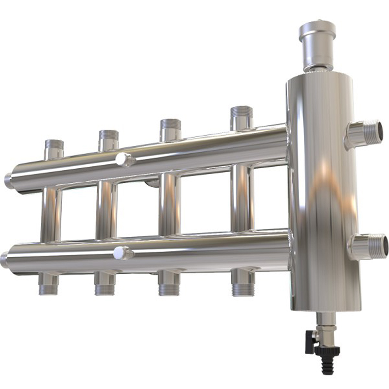 Гидрострелка с коллектором на 5 контуров позволяет включать в систему разнообразные теплообменники: