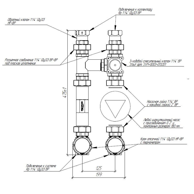 GIDRUSS Насосная группа с 3-х ходовым смесителем 11/4" (латунь)