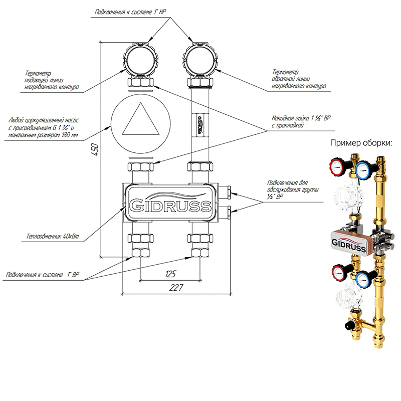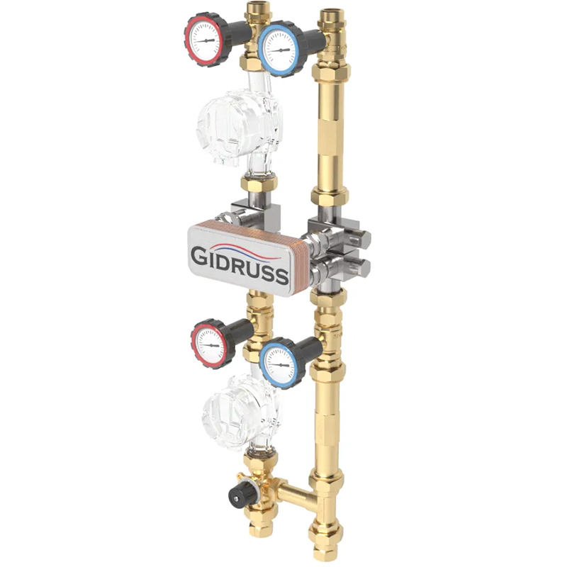 GIDRUSS Насосная группа с теплообменником 1 " (латунь, 30 кВт)