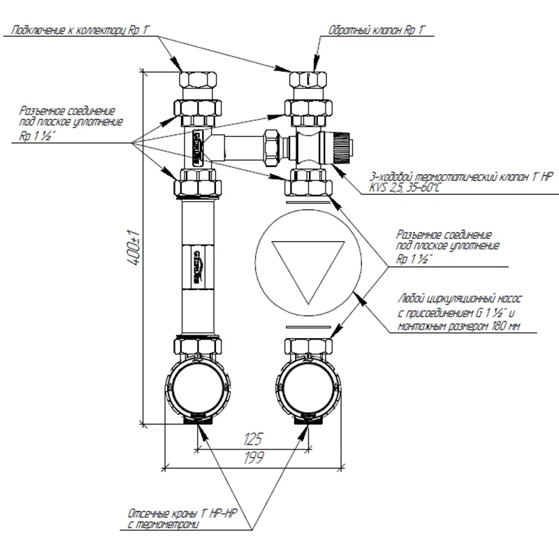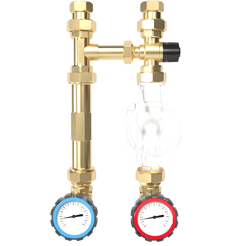 GIDRUSS Насосная группа с термостатическим смесительным клапаном 1" (латунь, 35-60°С)