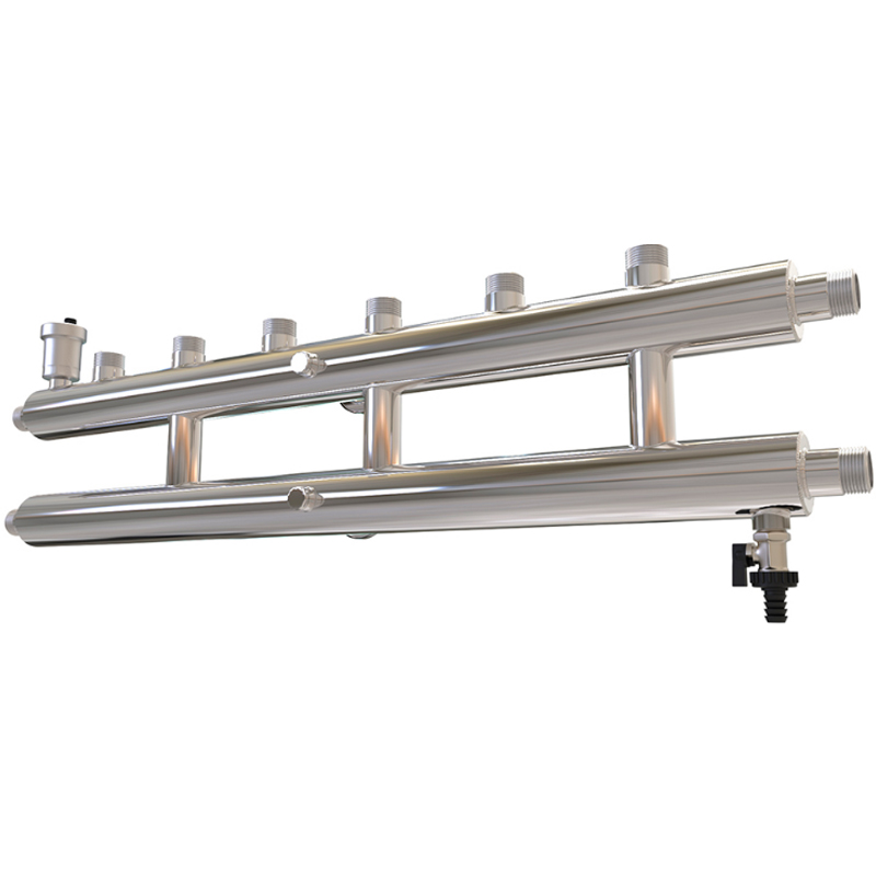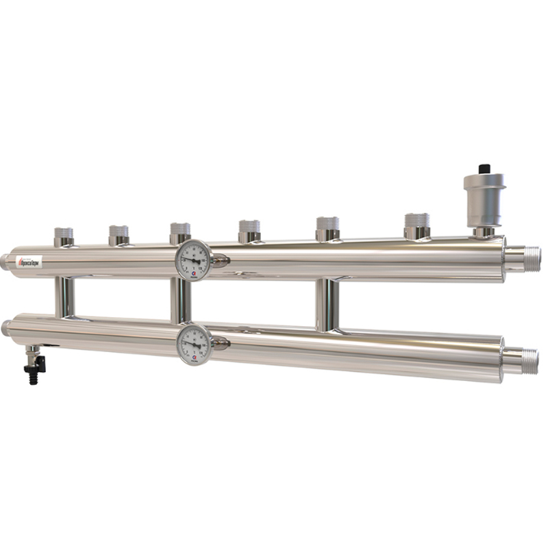 - Материал Изготовленный из нержавеющей стали, коллектор обладает высокой коррозионной стойкостью. Это гарантирует долговечность и надежность в эксплуатации, а также минимизирует необходимость в обслуживании.