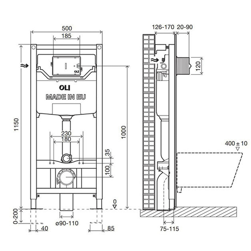 Инсталляция для подвесного унитаза OLI Sanitarblock пневматика (кнопка приобрет. отдельно)