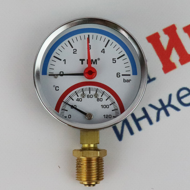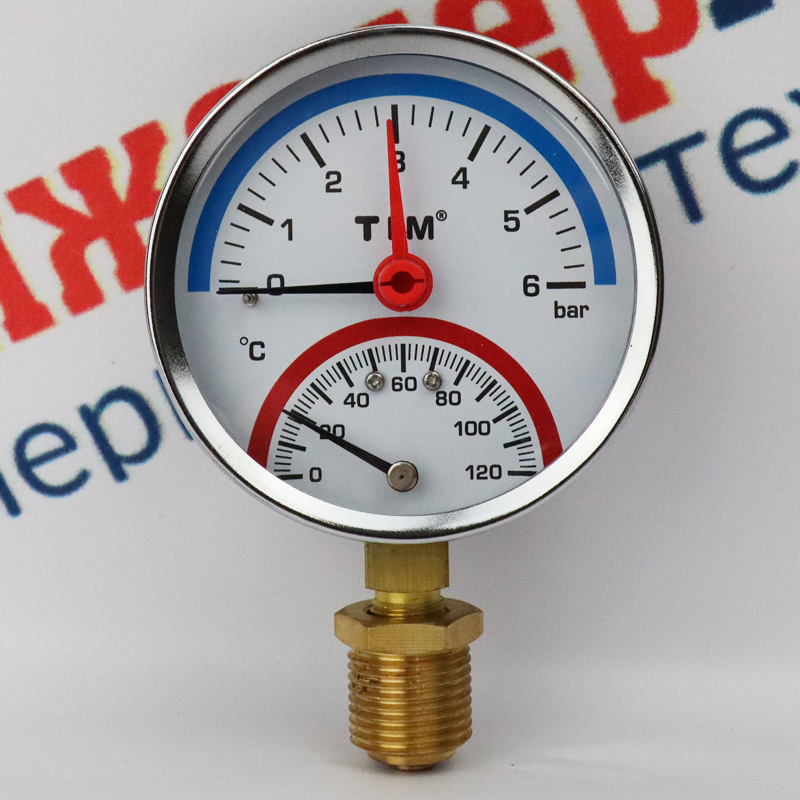 Термоманометр TIM радиальный 6 бар, темп. 0-120 град. 1/2"