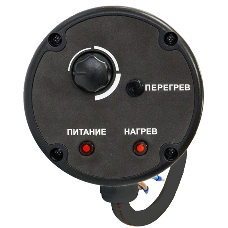 Термостат позволяет задавать температуру теплоносителя в диапазоне от 30 до 75 C, а в случае перегрева отключает электропитание.