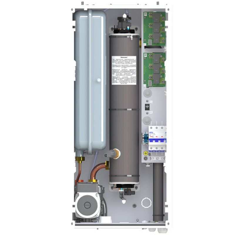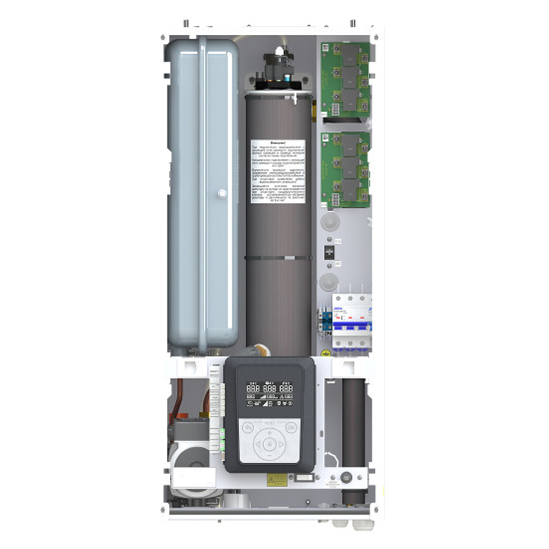 - 6 уровней защиты: независимый автоматический расцепитель, датчик давления, датчик температуры теплоносителя, датчик перегрева теплоносителя, термопредохранители (на силовых реле), автомат защиты сети.