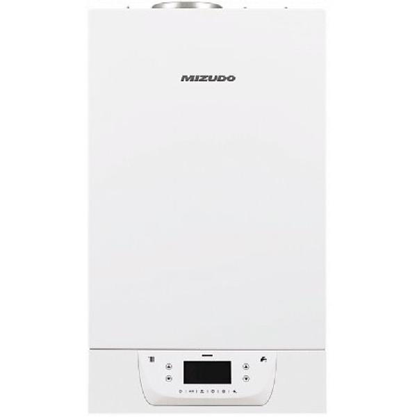 Котел отопительный газовый конденсационный настенный MIZUDO M36TK со встроенной горелкой с полным предварительным смешиванием газовоздушной смеси, с теплообменником из нержавеющей стали для контура отопления, с закрытой камерой сгорания и принудительной тягой, с электронным розжигом.