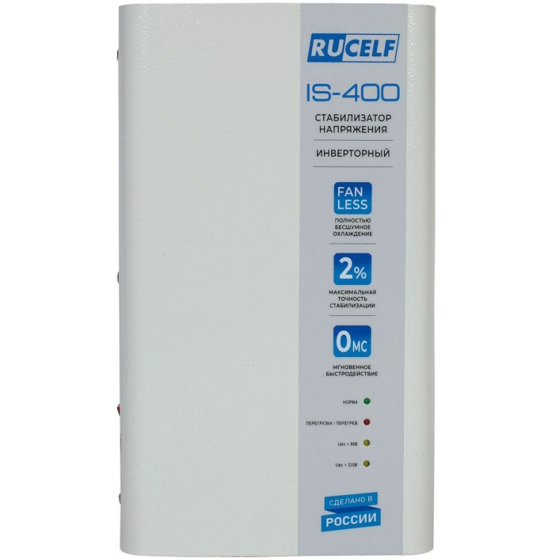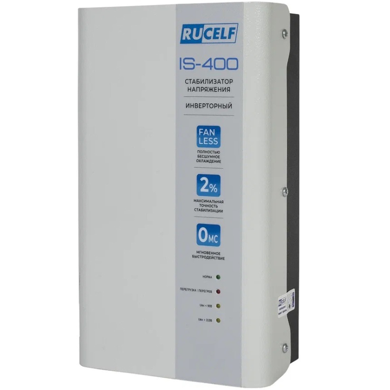 Стабилизатор напряжения высокой точности RUCELF IS-400 предназначен для защиты бытовых электроприборов от колебаний напряжения в однофазных сетях. Инверторный стабилизатор широко используется в быту для защиты высокочувствительной электротехники, газового и отопительного оборудования, климатических устройств и др.