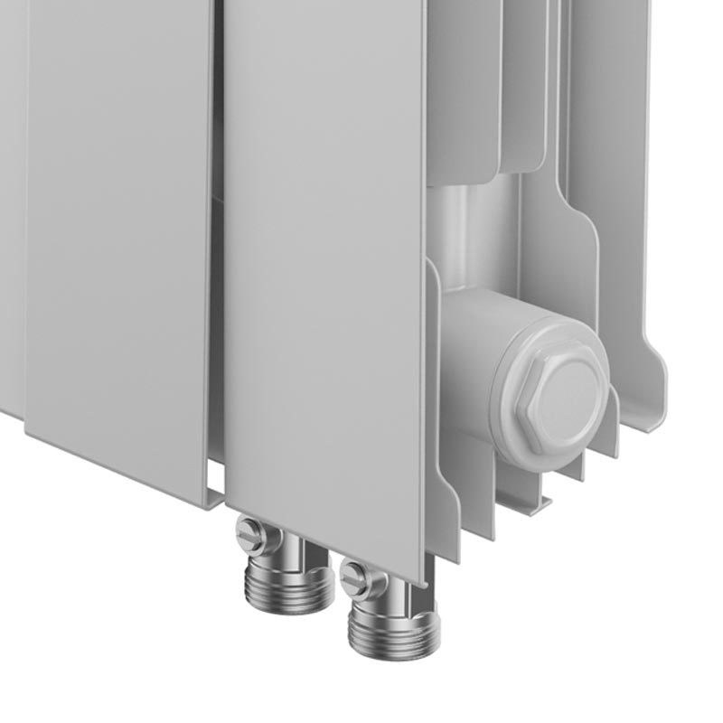 Дополнительное оребрение на вертикальном коллекторе секции увеличивает теплоотдачу радиатора на 5%. Такое решение способствует более быстрому обогреву помещений при том же размере и весе секций.