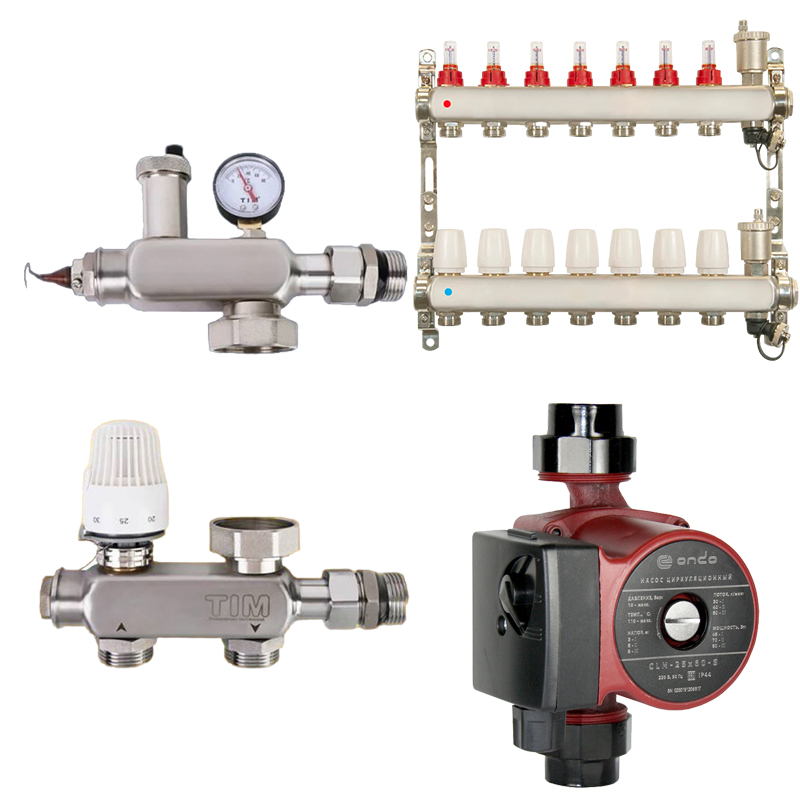 Комплект водяного теплого пола до 105 м2 (TIM JH-1040 + насос 25/6 + коллектор 7 вых)*