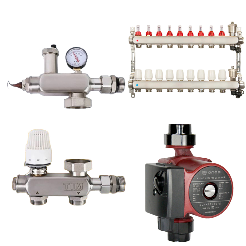 Комплект водяного теплого пола до 135 м2 (TIM JH-1040 + насос 25/6 + коллектор 9 вых)*