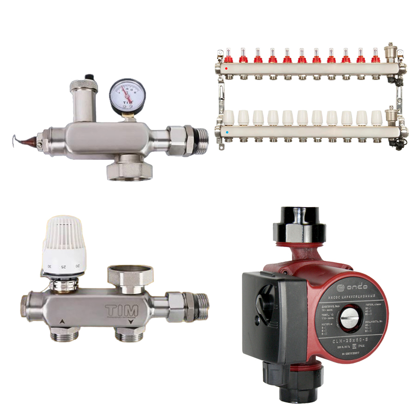 Комплект водяного теплого пола до 165 м2 (TIM JH-1040 + насос 25/6 + коллектор 11 вых)*