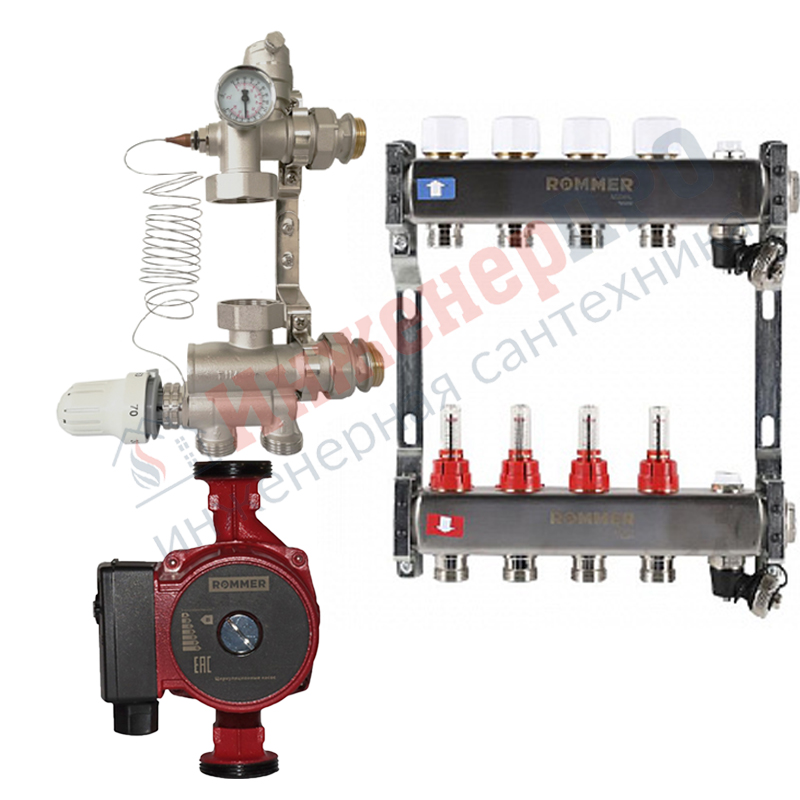 Комплект водяного теплого пола на 4 вых. до 60м2 (Rommer RMS-1201)