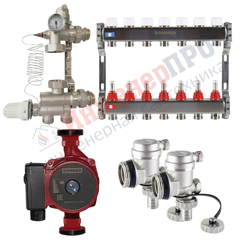 Комплект водяного теплого пола на 7вых. до 105м2 (Rommer RMS-1200)*
