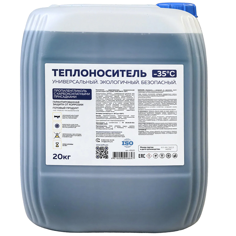 Теплоноситель SANFIX -35, 20 литров, пропиленгликоль (с карбоксилатными присадками)