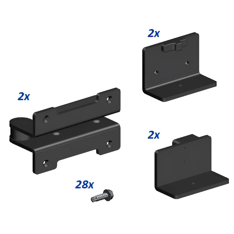 Комплект петель WALLBOX WB 90200 включает усиленные стальные петли из оцинкованной стали толщиной 4 мм, два откидных механизма с зацепом для надёжной фиксации двери, набор усиленных кровельных саморезов длиной 28 мм и монтажные шаблоны.