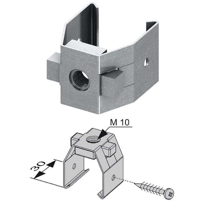 Установочный элемент WALLBOX WB 90401 из оцинкованной стали с резьбой М8 или М10 предназначен для установки на сантехнический алюминиевый профиль WALLBOX WB 90003. Он используется для фиксации резьбовой шпильки М8 на каркасе для закрепления хомутов, скользящих опор и других элементов.