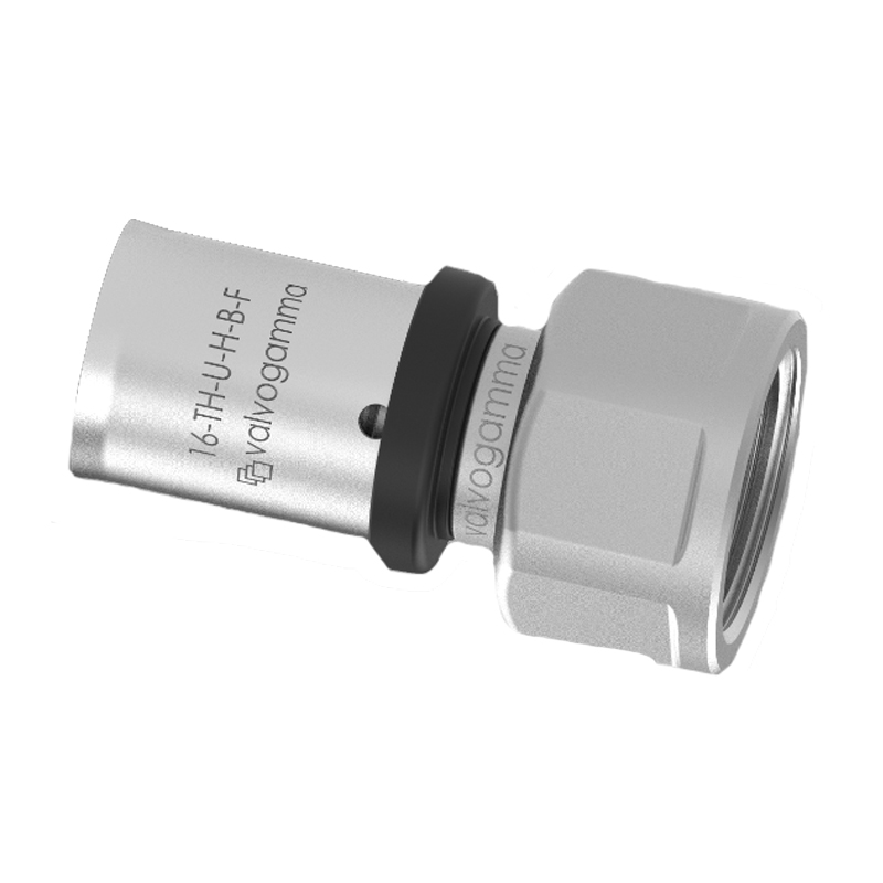 Пресс фитинг с переходом на внутреннюю резьбу пресс системы VALVOGAMMA применяется в качестве соединителя металлополимерной трубы VALVOGAMMA PE-Xb/AL/PE-Xb и элемента системы с резьбовым патрубком – крана, клапана и т.д. Областью применения фитинга являются системы водоснабжения, отопления, трубопроводы технологического назначения. Корпус фитинга горячепрессованная, никелированная латунь CW617N. Материал пресс-гильзы – нержавеющая сталь AISI 304. Уплотнительный материал на штуцере (два кольца) – EPDM Perox, материал изолятора – нейлон.