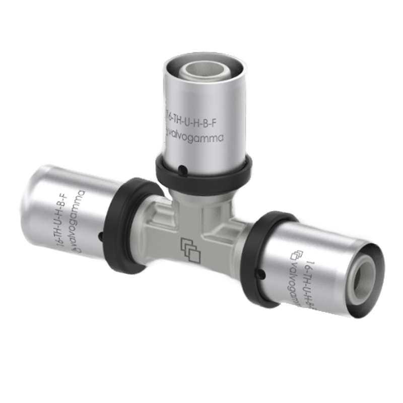 Пресс фитинг – тройник пресс системы VALVOGAMMA предназначен для соединения трех металлополимерных труб VALVOGAMMA PE-Xb/AL/PE-Xb. Корпус фитинга горячепрессованная, никелированная латунь CW617N. Материал пресс-гильзы – нержавеющая сталь AISI 304.