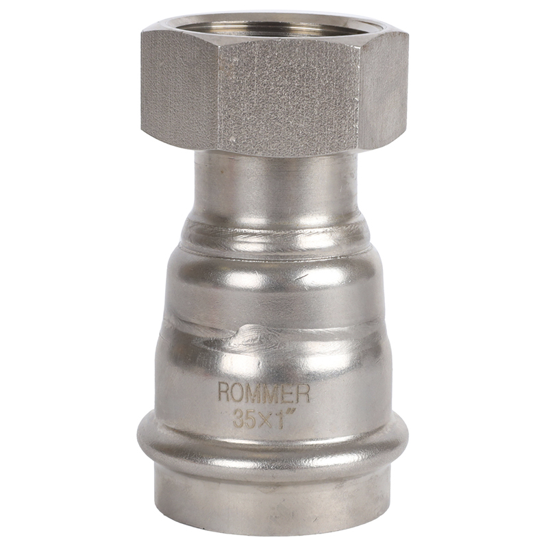 Пресс муфта с накидной гайкой Rommer из нержавеющей стали (RSS-0026) применяется для организации систем отопления и водоснабжения в квартирах и частных домах. Производится из нержавеющей стали марки SUS 304. Непрессованное соединение не герметично за счет специальной формы уплотнительного EPDM-кольца.