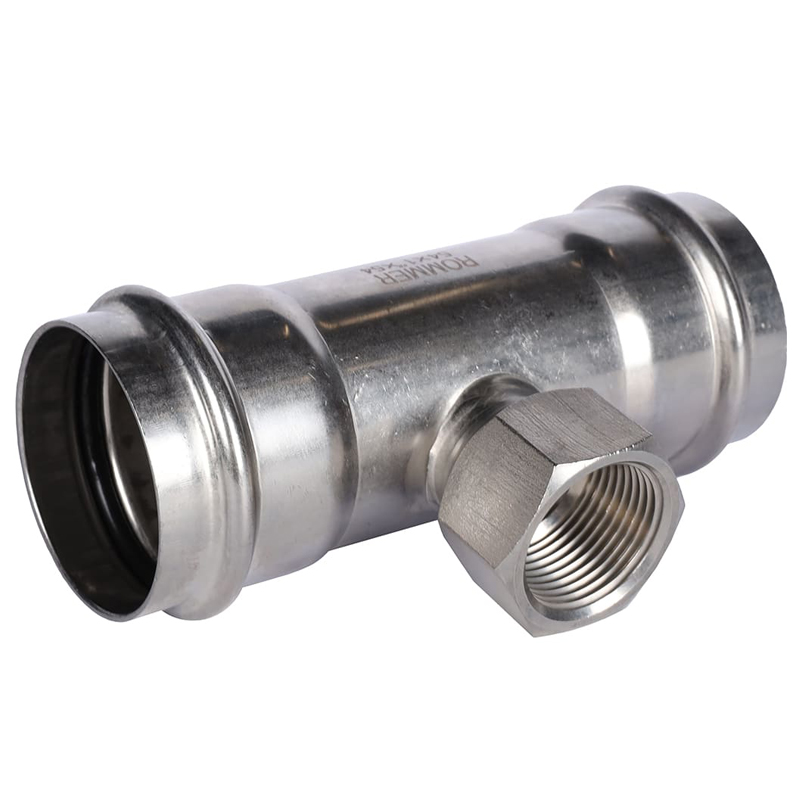 Пресс тройник Rommer из нержавеющей стали (RSS-0015) применяется для организации систем отопления и водоснабжения в квартирах и частных домах. Производится из нержавеющей стали марки SUS 304. Непрессованное соединение не герметично за счет специальной формы уплотнительного EPDM-кольца.
