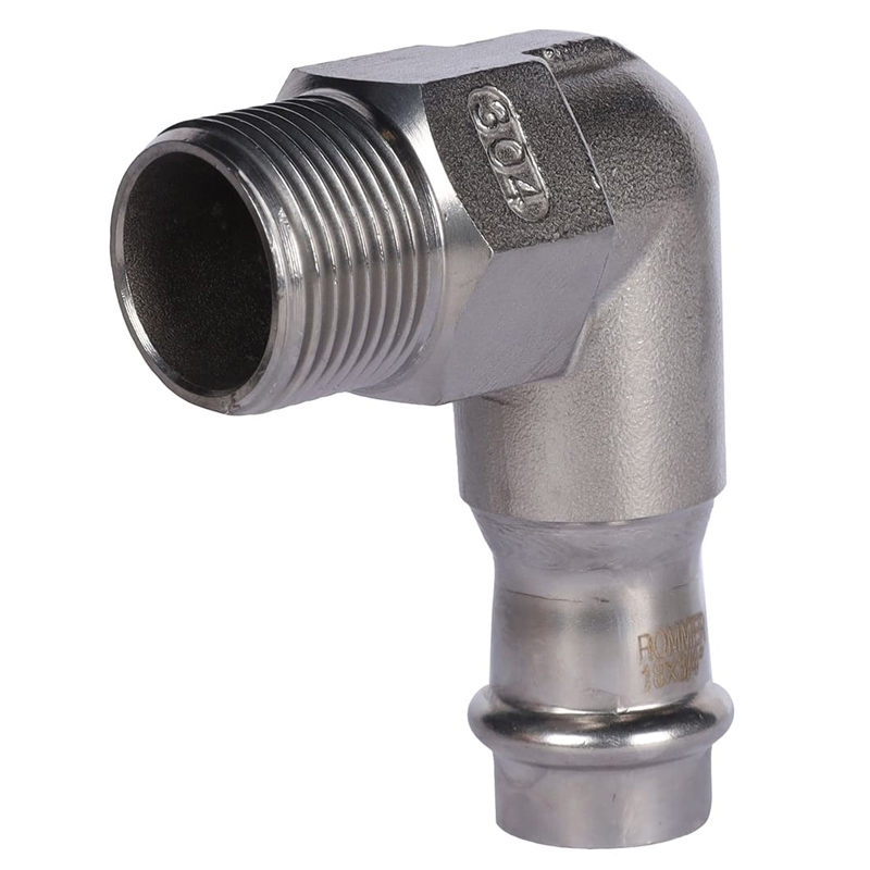 Пресс угольник Rommer из нержавеющей стали (RSS-0010) применяется для организации систем отопления и водоснабжения в квартирах и частных домах. Производится из нержавеющей стали марки SUS 304. Непрессованное соединение не герметично за счет специальной формы уплотнительного EPDM-кольца.