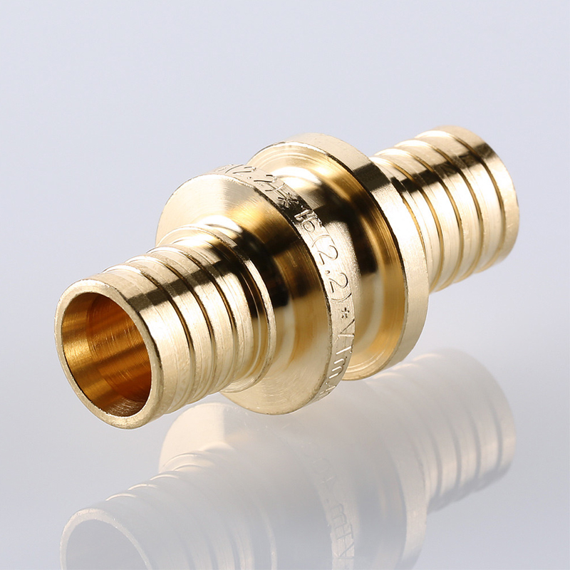 VTm.403.BG – прямой латунный универсальный надвижной фитинг для монтажа соединений труб из сшитого полиэтилена и полиэтилена повышенной термостойкости.