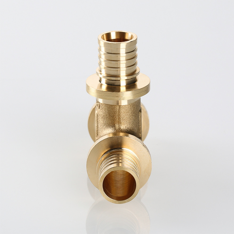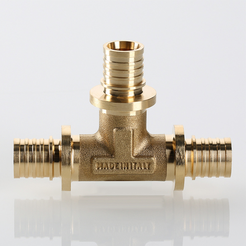 Надвижной тройник VTm.431.BG – трехсторонний латунный универсальный аксиальный фитинг для монтажа неразъемных соединений труб из PEX и PE-RT.