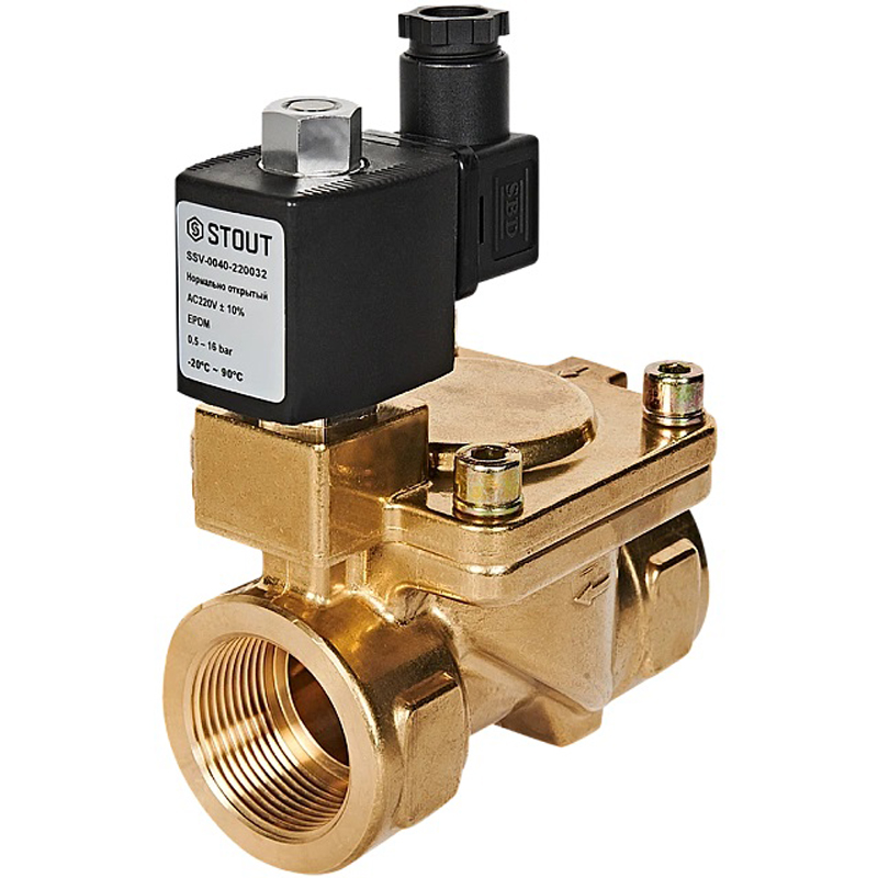 STOUT Клапан электромагнитный, непрямого (пилотного) действия, 1 1/4" 220В (нормально открытый)