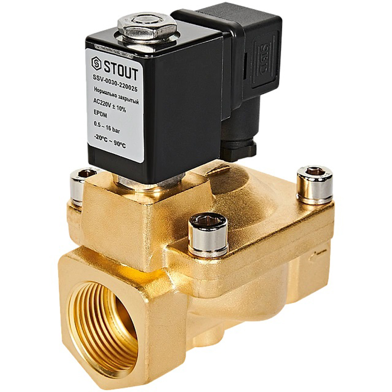 STOUT Клапан электромагнитный, непрямого (пилотного) действия, 1" 220В (нормально закрытый)
