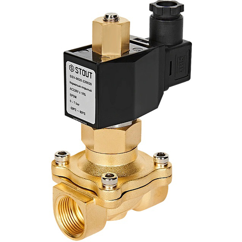 STOUT Клапан электромагнитный, прямого действия, 3/4" 220В (нормально открытый)